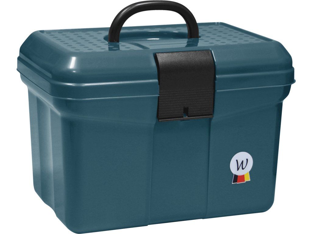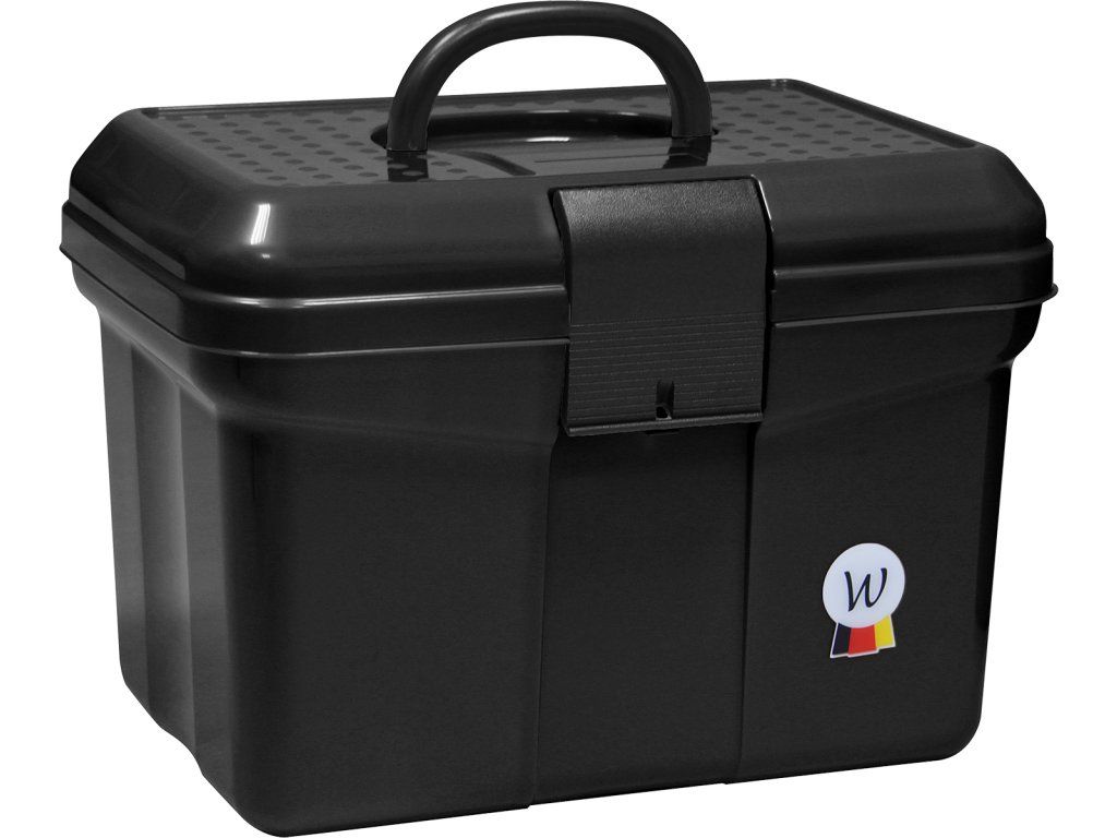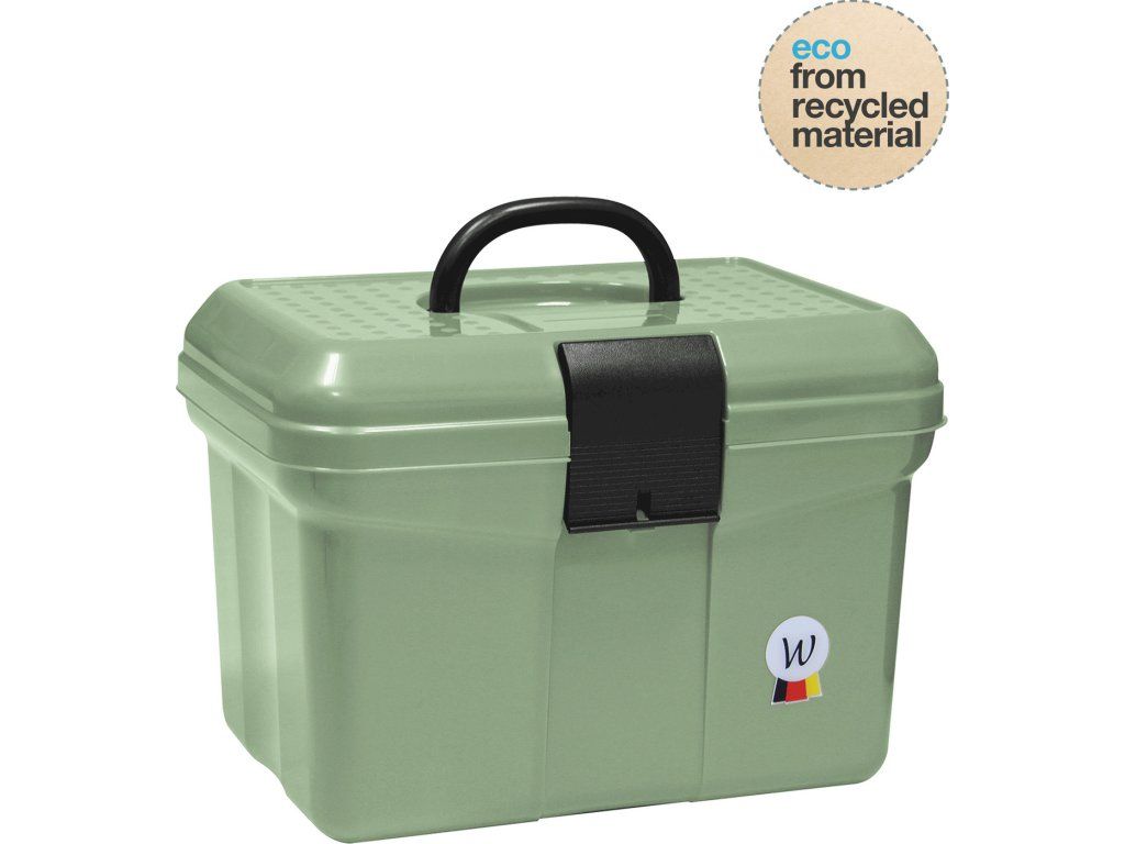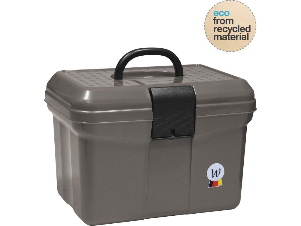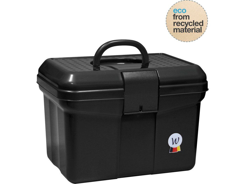 Vysoce kvalitní box z recyklovaného plastu. Perfektní pomocník ve stáji i na závodech. Výsuvná rukojeť, uzavíratelné zapínání na patentky, dvojitě nastavitelná přepážka, vyjímatelná přihrádka na malé díly a nízká hmotnost, díky níž vyniká!