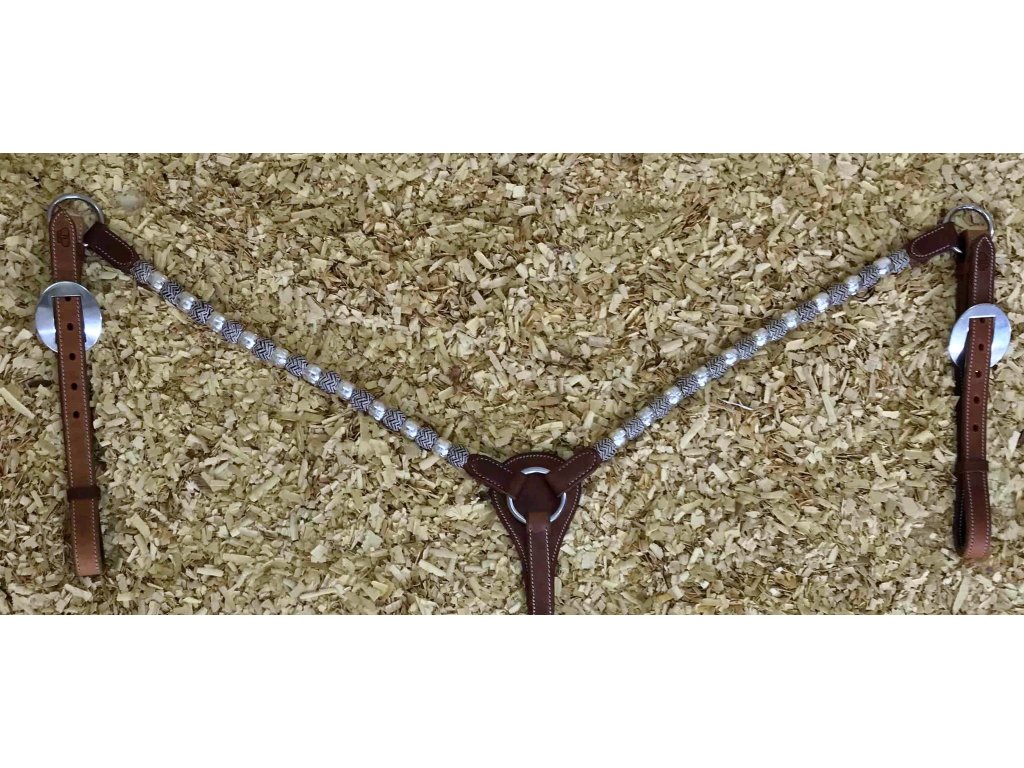 Buckaroo westernový poprsák s rawhide opletem a silver balls, oliato brown. Velikost QH
