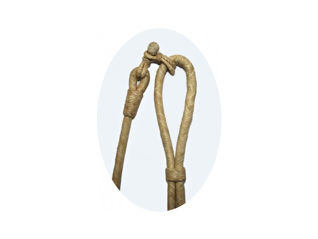 Romal reins z přírodní surové kůže. Celková délka: cca 290 cm. Délka dvojitého konce: cca 135 cm. Délka jednoduchého konce: cca 155 cm. Délka koženého popperu: cca 28 cm