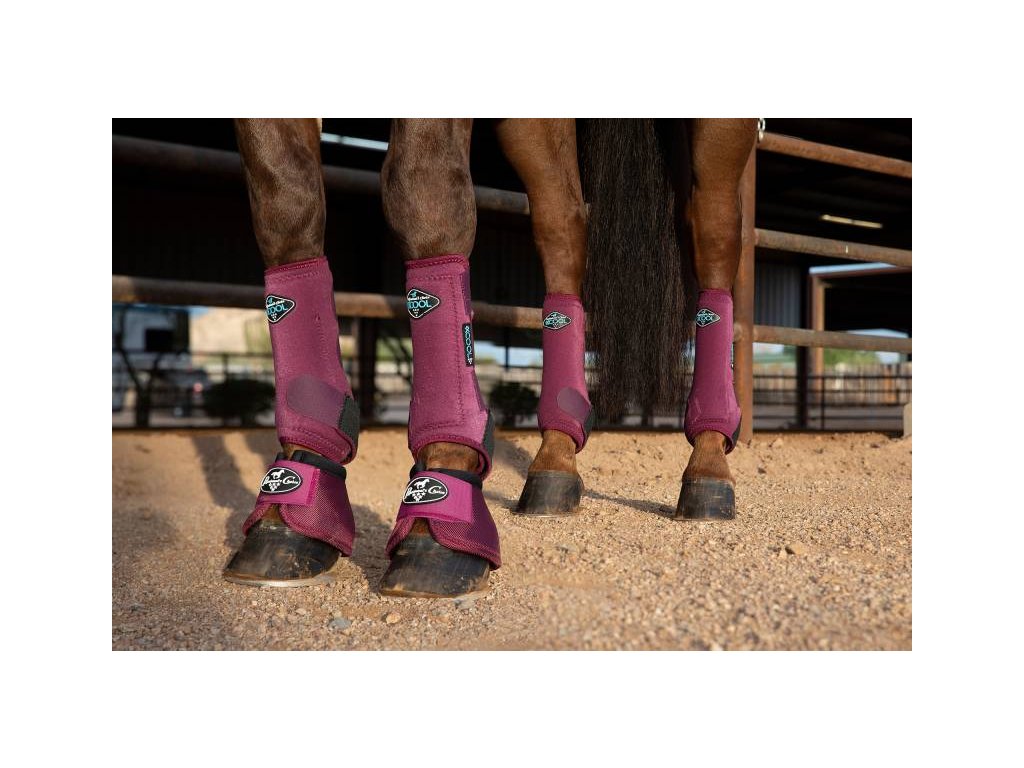 Kamaše 2XCool jsou sportovní lekářské kamaše vyrobeny z lehkého, extra prodyšného materiálu, který však navíc zaručí flexibilitu a ochranu nohou vašeho koně. Vnitřní vystélka kamaší je vyrobena z 2XCool výkonného materiálu, technologicky vyspělé látky, která kombinuje chladivé minerály a rychlé schnutí tak, aby vytvořila efekt trojitého chlazení, který instantě uleví od horka a vlhka. Zapínání na suchý zips je pružné, kamaše se tak dokonale obemkne kolem končetiny zvířete a neomezí její pohyblivost.
