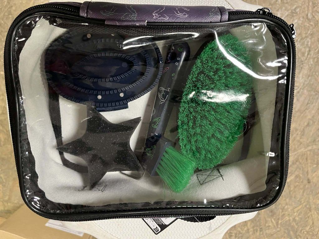 Dětský set na čištění. Kompletní sada v praktické taštičce, která obsahuje vše důležité, co mladý milovník koní potřebuje k péči o svého čtyřnohého kamaráda.