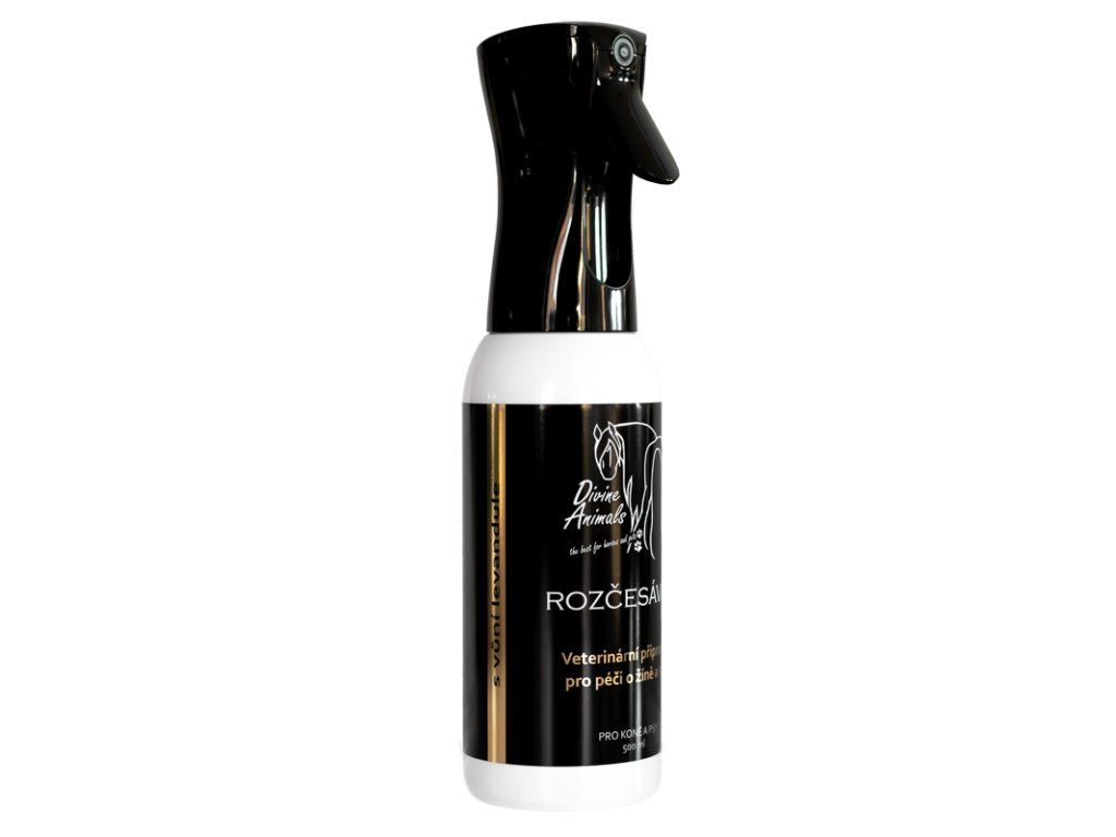 Bezoplachový kondicionér usnadňuje rozčesávání, vyhlazuje žíně a srst a působí antistaticky. Po aplikaci jsou žíně a srst hebké, lesklé a poddajné. Eliminuje ulpívání prachu na žíních a srsti. Příjemná levandulová vůně napomáhá odpuzovat hmyz. Rozprašovač funguje v jakékoliv poloze - i dnem vzhůru.