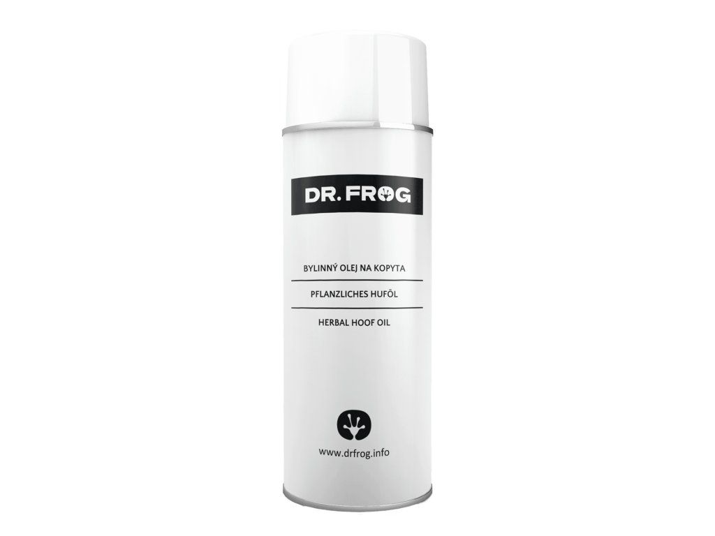 Dr. FROG – BYLINNÝ OLEJ NA KOPYTA slouží k povrchovému ošetření rohového pouzdra. Díky svému originálnímu složení na bázi slunečnicového, mandlového, lanolinového, levandulového oleje a vitamínu E, poskytuje ochranu proti vysychání a zvyšuje vláčnost rohoviny. Bylinná směs olejů dodává kopytu barvu, lesk a chrání ho před agresivním prostředím. Cíleně vyvinutá kombinace náplně a aerosolového rozprašovače minimalizuje syčící zvuk a možnou nežádoucí reakci koně. Příbalová informace, v tomto případě etiketa výrobku, je schválena dle platné legislativy a uvádí požadované informace pro spotřebitele.