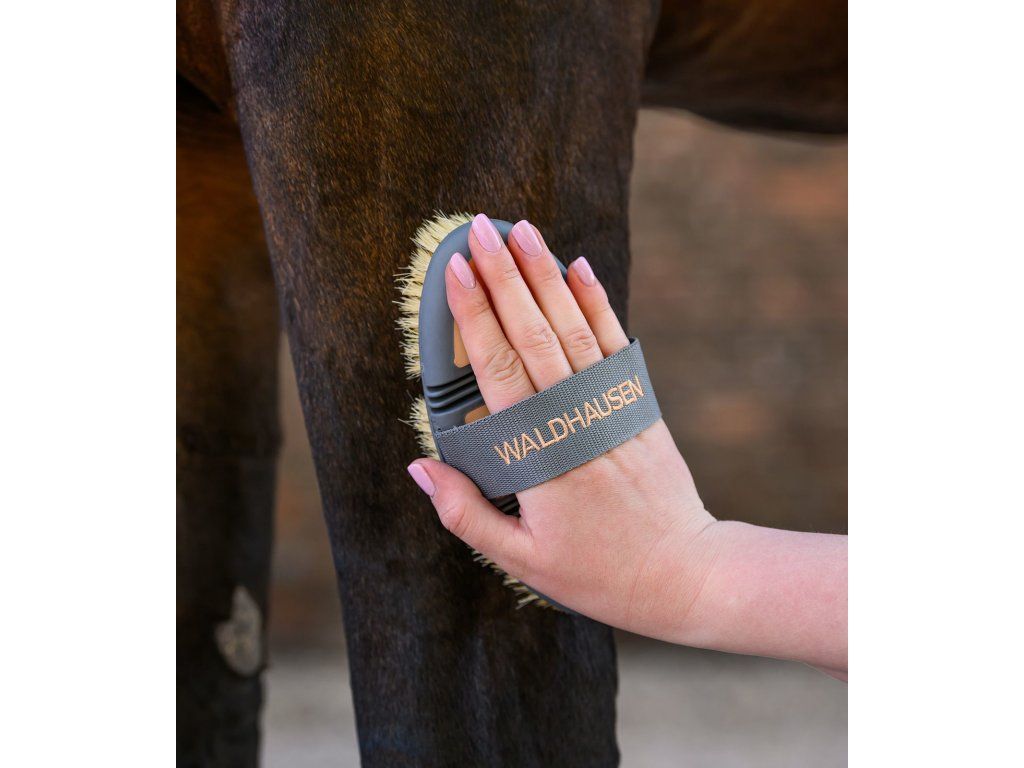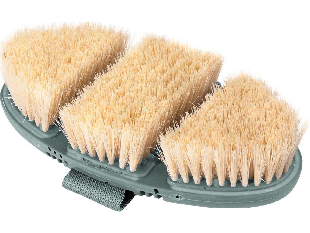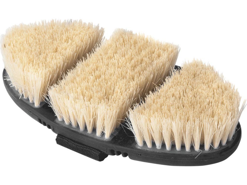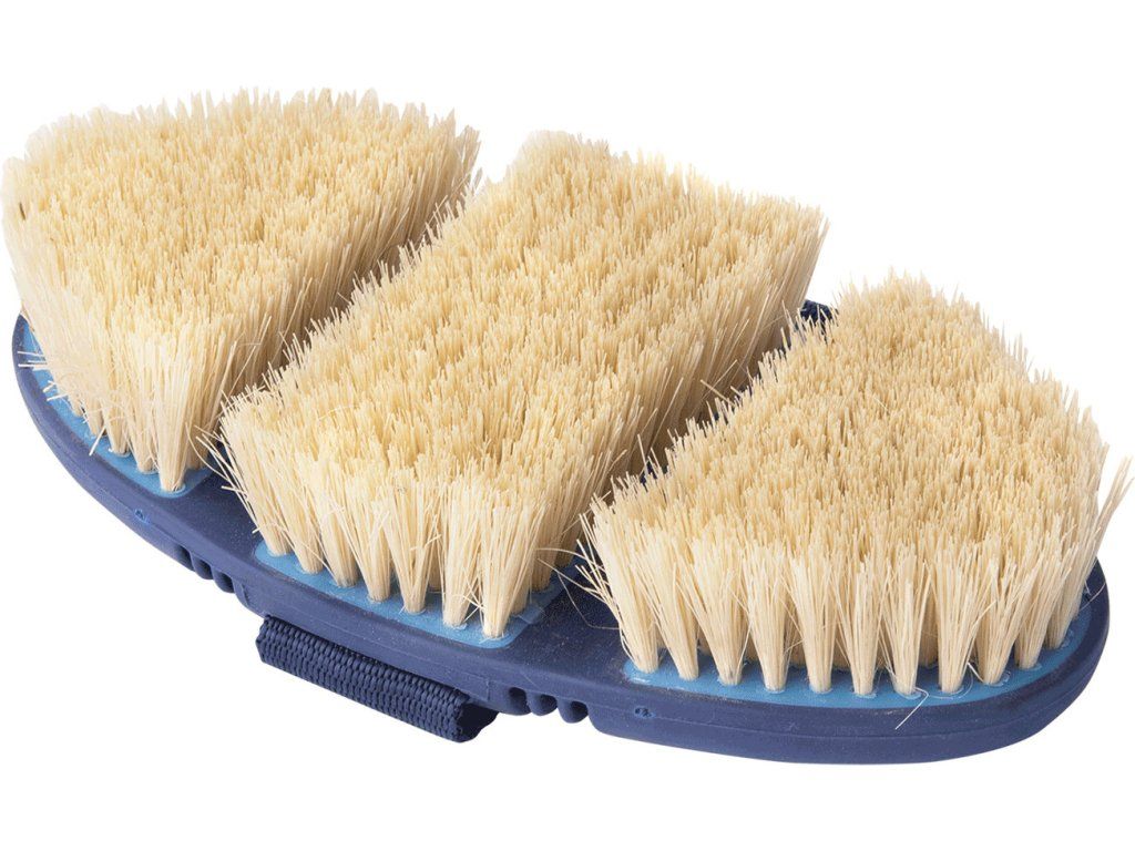 Díky robustním přírodním štětinám je ideální pro odstraňování tvrdých nečistot, jako je bláto, z celého koně.