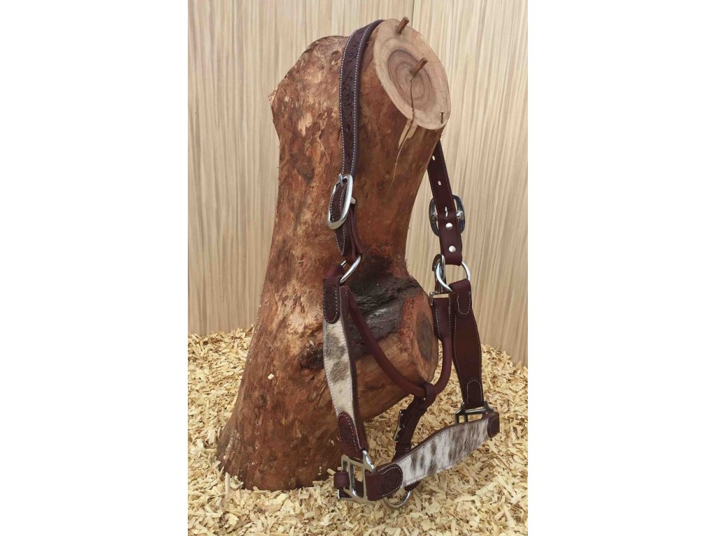 Plně nastavitelná ohlávka pro halter disciplíny. Velmi zajímavé zdobení se srstí. Velikost QH, vhodná i pro všechny podobné velikosti koní.