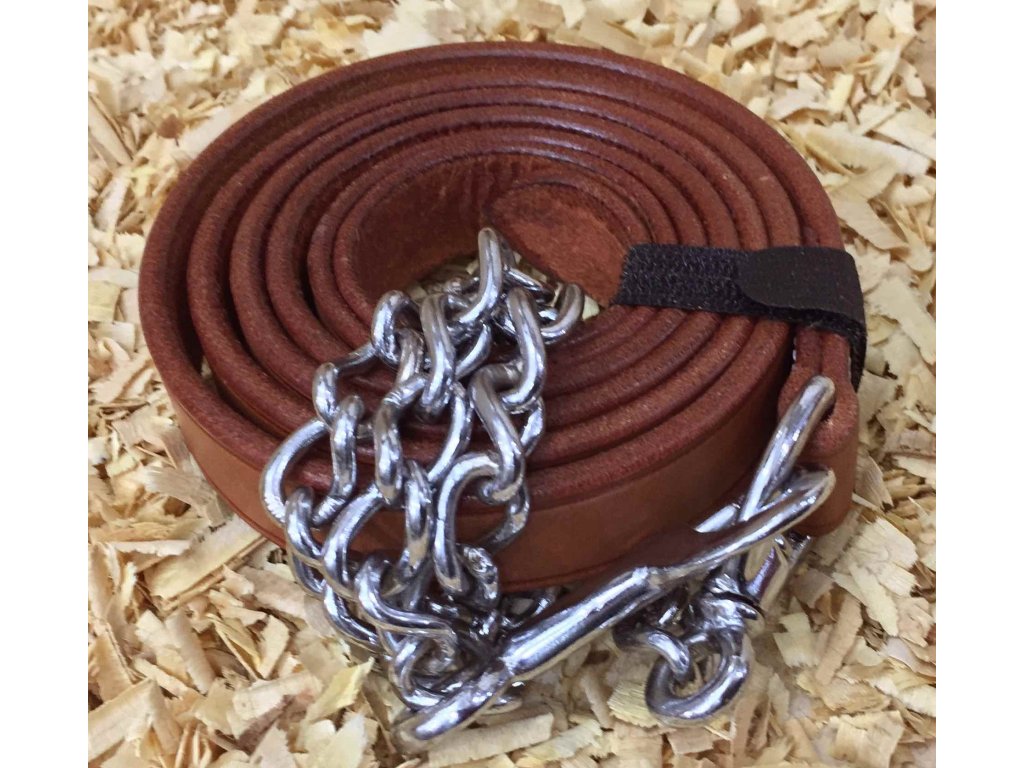 Westernové vodítko pro Halter disciplíny. Rozměry: délka řetízku (A–B): 63 cm, délka kožené části: 163 cm, šířka kožené části: 2,54 cm