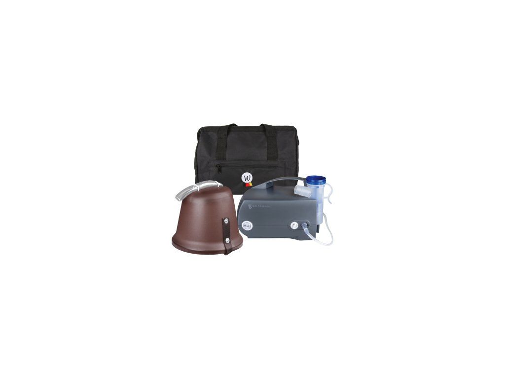 Inhalátor pro dolní a horní dýchací cesty a pro hlubokou inhalaci dýchacích cest s lékovými aerosoly. Šetrné ke koním, velmi efektivní manipulace. Dodáváno s inhalační maskou/košem, nebulizérem a praktickou úložnou taškou. Toto zařízení umožňuje transport jakýchkoli ve vodě rozpustných léků přímo na povrch plic. Tím je zajištěn optimální a přímý účinek léku! Velikost částic: Přibl. 75,74±0,02% v rozsahu 0,5 až 5um Maximální plnicí množství lékovky 8 ml.
