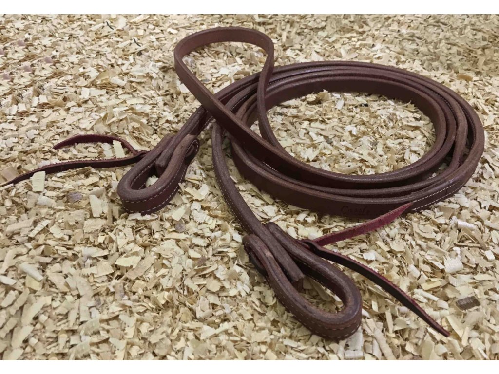 Kvalitní jednodílné otěže z olejové kůže. Šířka 1,37 mm (5/8"), Celková délka 3,1 metry.