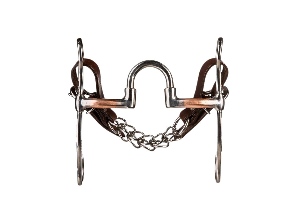 Korekční westernové udidlo Bernard Fonck s měděným udítkem, krátkými rytými shanks a řetízkem.