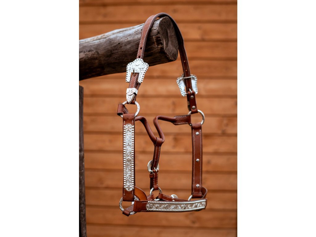 Haltrová kožená show ohlávka se stříbrným kováním