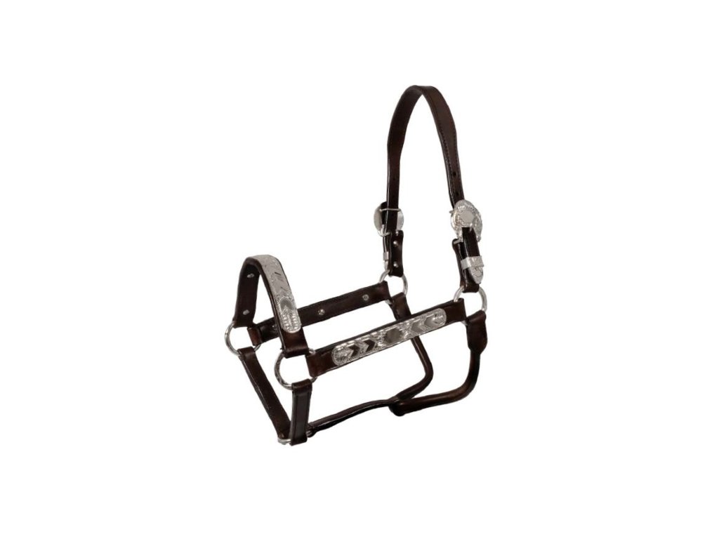 Westernová Show ohlávka se zdobením ve stříbrné barvě. Upozornění: tato ohlávka není nastavitelná pod nánosníkem, proto není vhodná pro Halter soutěže.