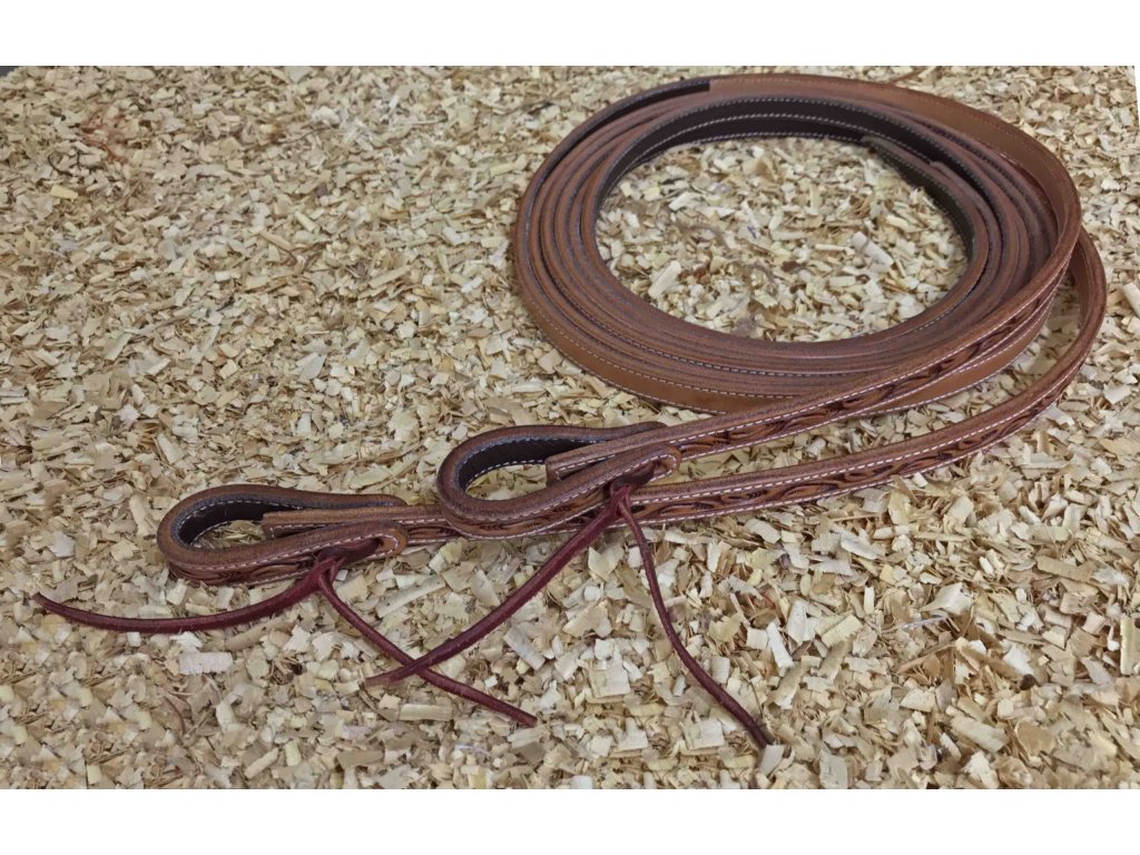 Kožené westernové otěže zrobené basketem, délka 274cm, světle hnědá, síla otěže 5/8"