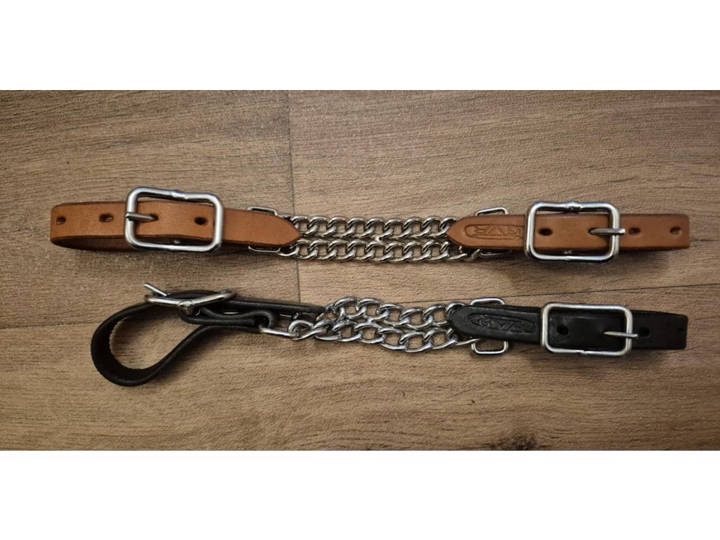 Kožený podbradní řemínek s dvojitým řetízkem