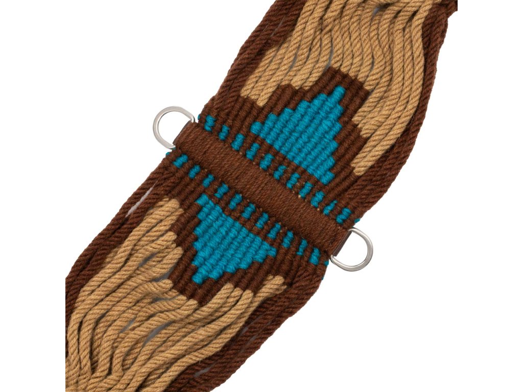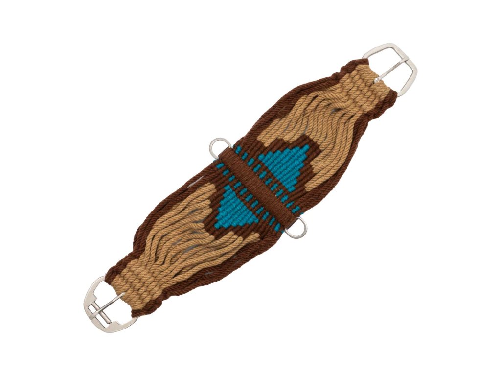 Kvalitní provazový podbřišník vyrobený z mohérové tkaniny s koženými výztuhami a nerezovými přezkami pro maximální odolnost a dlouhodobou stabilitu. Kombinace přírodního vlákna a pevné konstrukce zajišťuje spolehlivý výkon při každodenním ježdění i náročnějším tréninku.