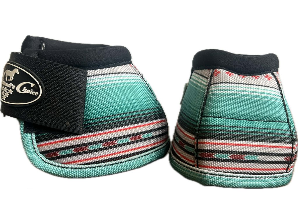 Nylonová svrchní vrstva je pevná, dobře omyvatelná a vydrží i v náročných podmínkách. Vnitřek zvonu vybaven zarážkou, která zabraňuje zvonu se přetočit. Jsou anatomické a kryjí kopyto po celé délce spěnky až k patkám.