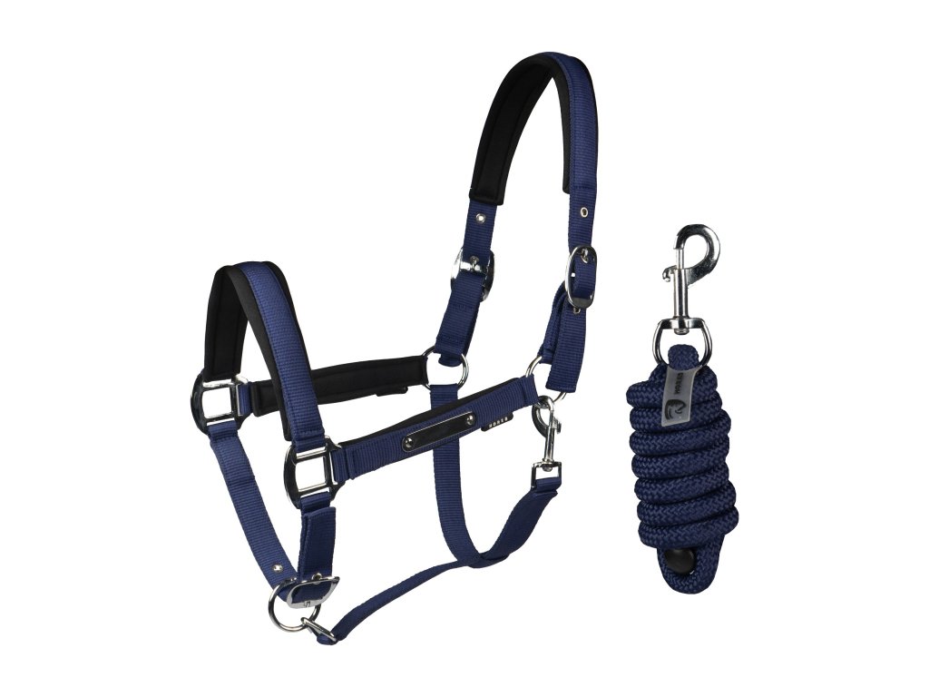 Nylonová ohlávka s kovovou destičkou na levé lícnici s měkkým neoprenovým podložením, dodáváme včetně 200 cm dlouhého vodítka.