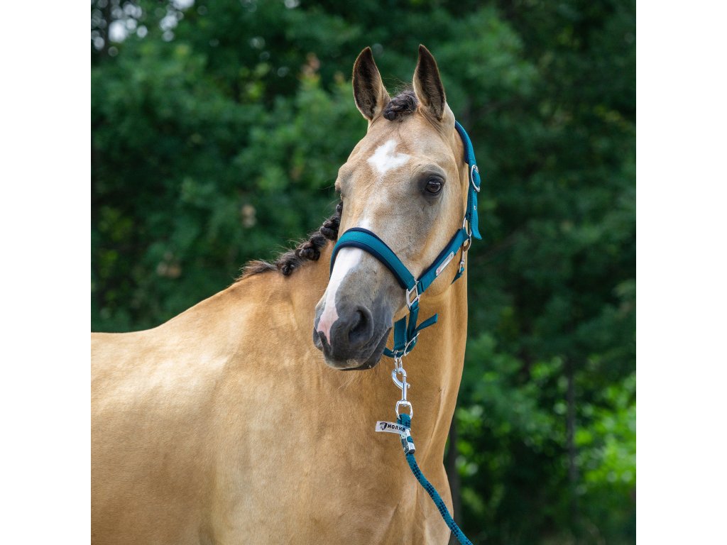 Nylonová ohlávka s kovovou destičkou na levé lícnici s měkkým neoprenovým podložením, dodáváme včetně 200 cm dlouhého vodítka. Ohlávka ve velikosti COB nám připadá jako velikost menší COB, pokud máte tedy koně s velikostí někde mezi, volte o číslo větší.