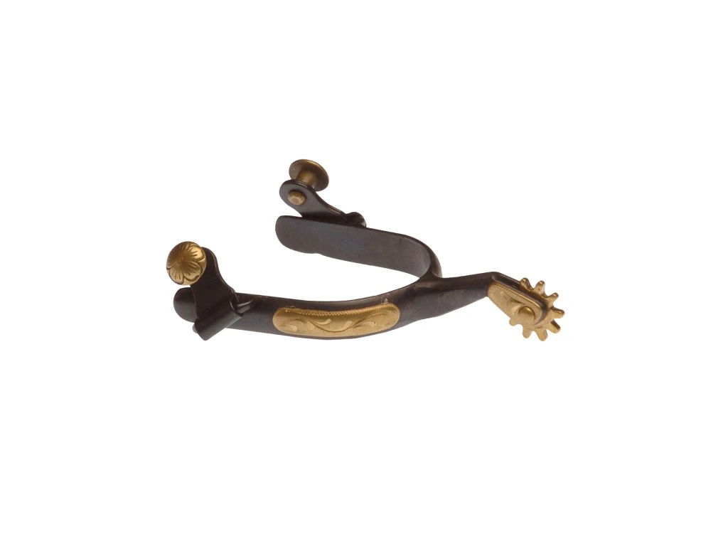 Ostruhy jsou vyrobeny z pevného černě upraveného železa, které zajišťuje vysokou odolnost a dlouhou životnost. Design doplňuje precizně opracovaná mosazná deska (brass deco), která dodává ostruhám elegantní kontrast a výrazný styl.