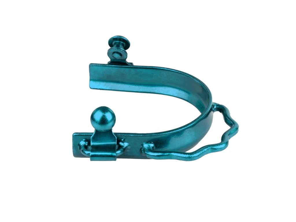 Nerezové bumper ostruhy s tyrkysovou povrchovou úpravou.