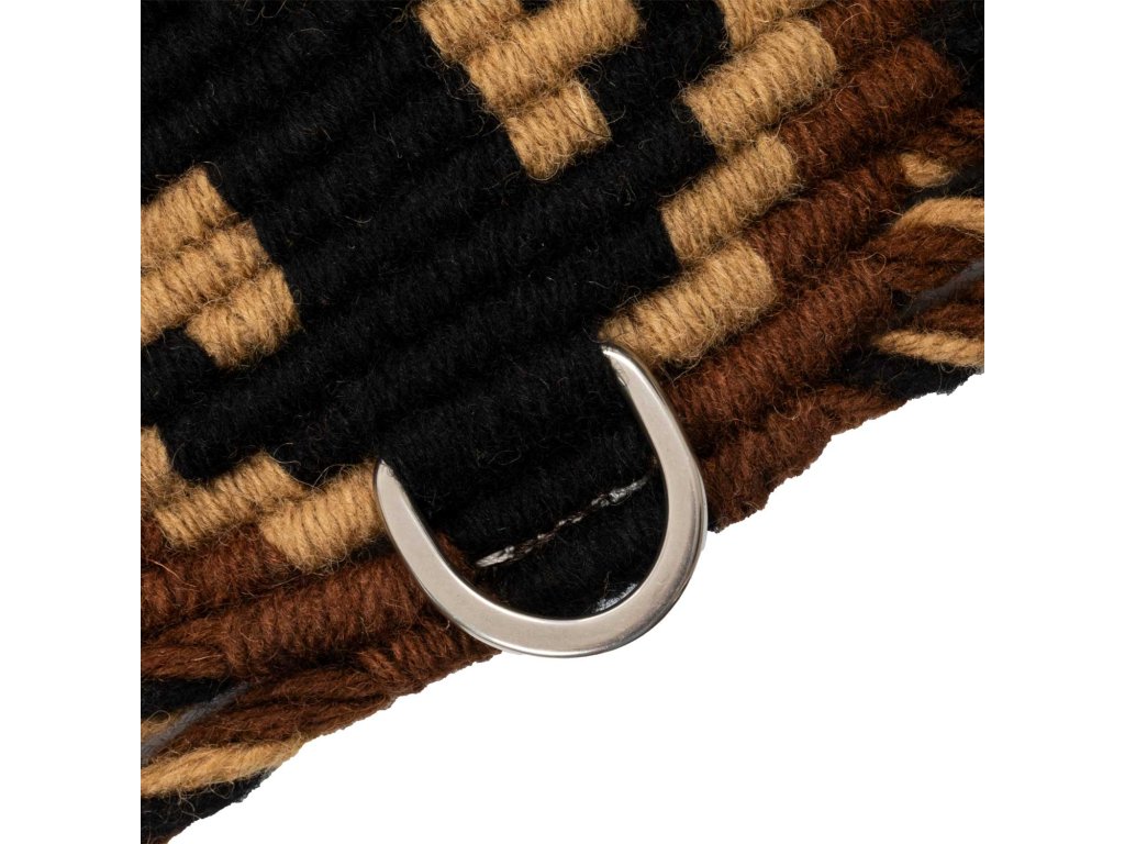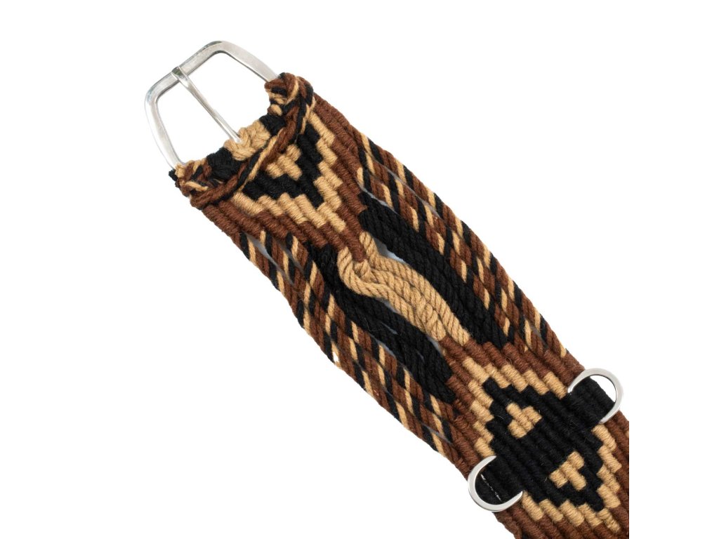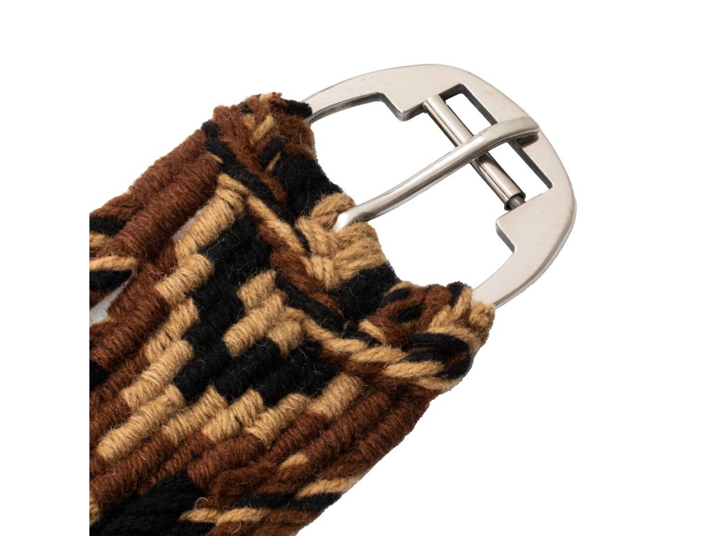 Kvalitní provazový podbřišník vyrobený z mohérové tkaniny s koženými výztuhami a nerezovými přezkami pro maximální odolnost a dlouhodobou stabilitu. Kombinace přírodního vlákna a pevné konstrukce zajišťuje spolehlivý výkon při každodenním ježdění i náročnějším tréninku.