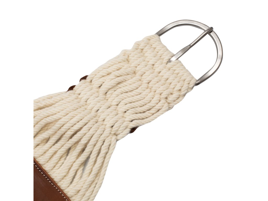 Podbřišník typu drawstring je vyroben z kvalitní mohérové tkaniny s koženými výztuhami a nerezovými přezkami pro maximální odolnost a stabilitu při používání.