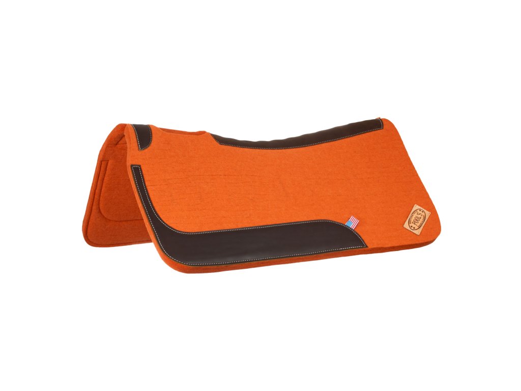 Krásná oranžová filcová deka pod westernové sedlo.