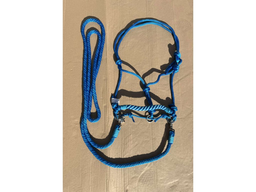 Provazová ohlávka jezdecká s otěžemi, Modrá FULL