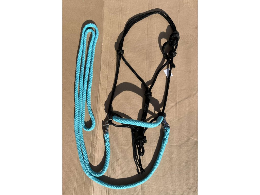 Jezdecká provazová ohlávka s odepínatelnými otěžemi.