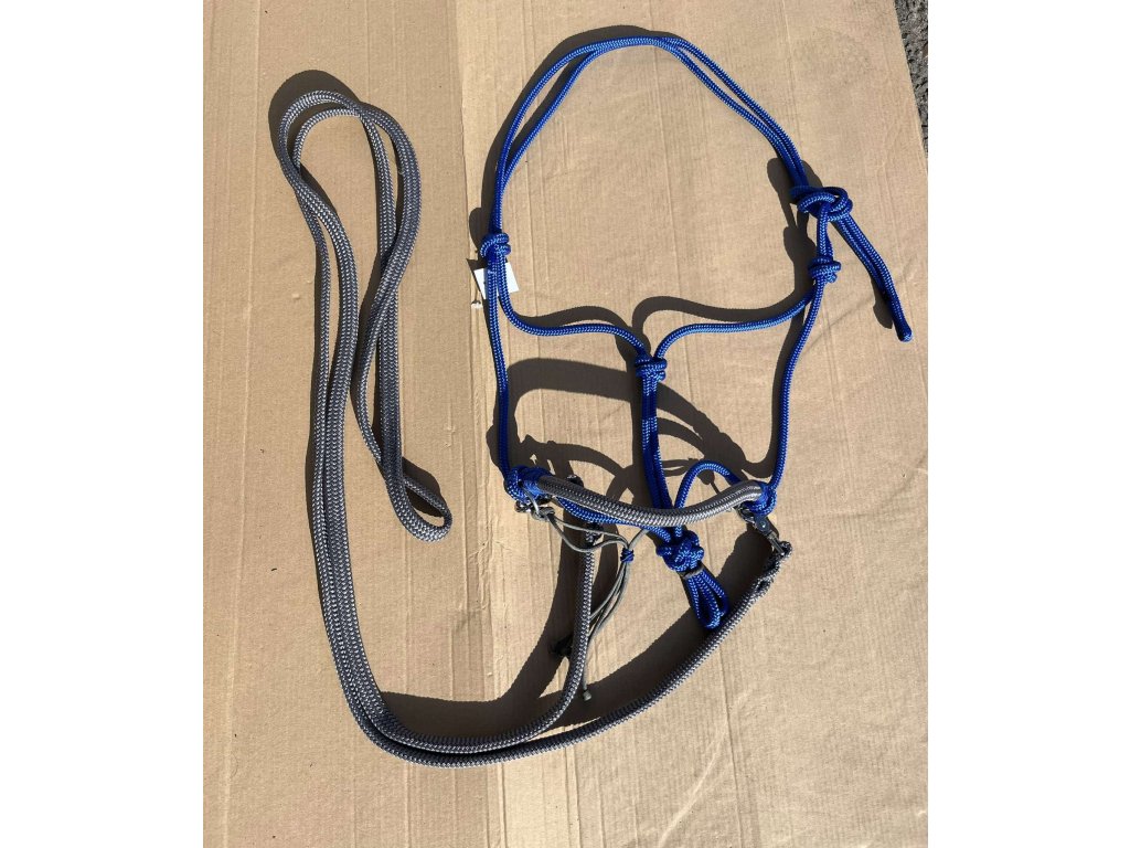 Provazová ohlávka jezdecká s otěžemi, Šedomodrá FULL
