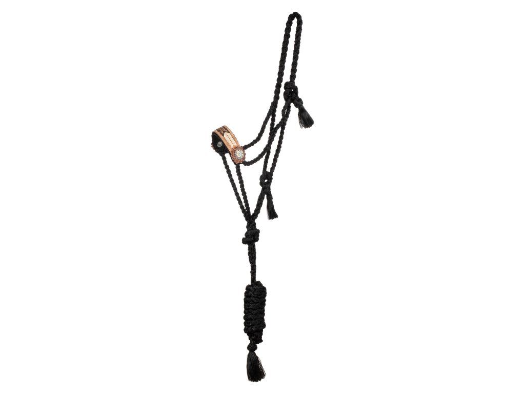 Provazová zdobená ohlávka s vodítkem, černá