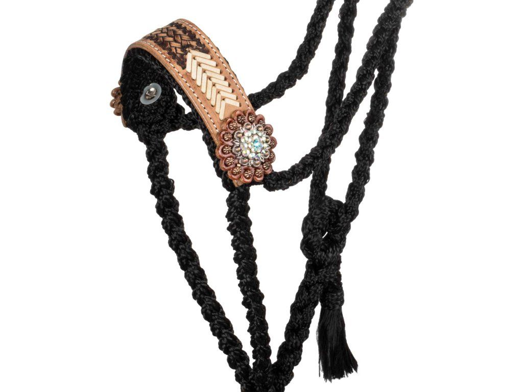 Kvalitní pletená provazová ohlávka vybavená dlouhým vodítkem (lonžkou). Nabízí klasický vzhled v moderním zpracování díky preciznímu pletení, koženým nánosníkem zakončeným končem - které jsou ručně vyráběné.