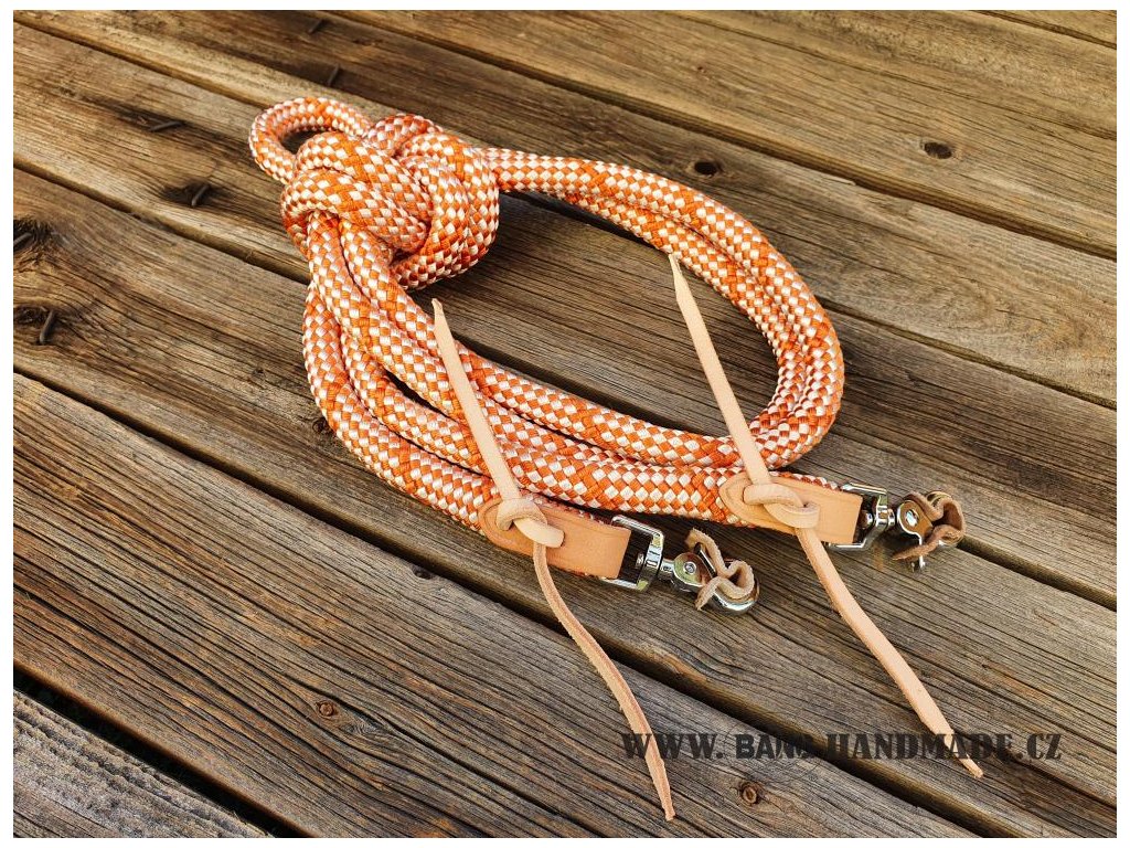 Otěže z jachtového lana. Lano je trochu tužší než jsou klasické jachtové otěže.