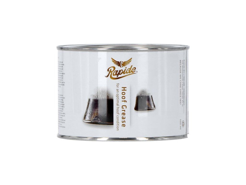 Rapide Hoof Grease byl vyvinut s použitím vavřínového oleje, vazelíny, přírodních a minerálních olejů. Tento produkt stimuluje optimální stav kopyt. Chrání je proti dehydrataci, rozpadání a podporuje jejich zdravý růst. Rapide Hoof Grease má hluboký a intenzivní efekt. Stav kopyt, které byly zanedbávány, se při pravidelném používání výrazně zlepší. Kombinace Rapide Hoof Grease s Rapide Hoof Oil a Rapide Stockholm Tar je optimální skupina výrobků pro péči o kopyta.