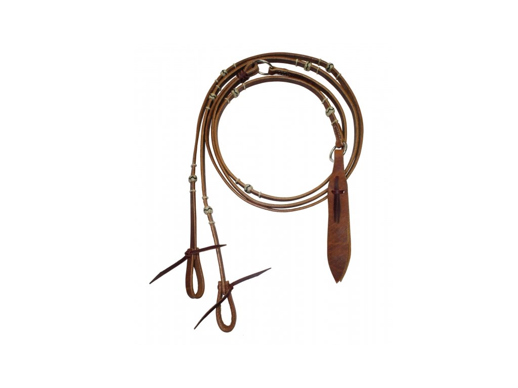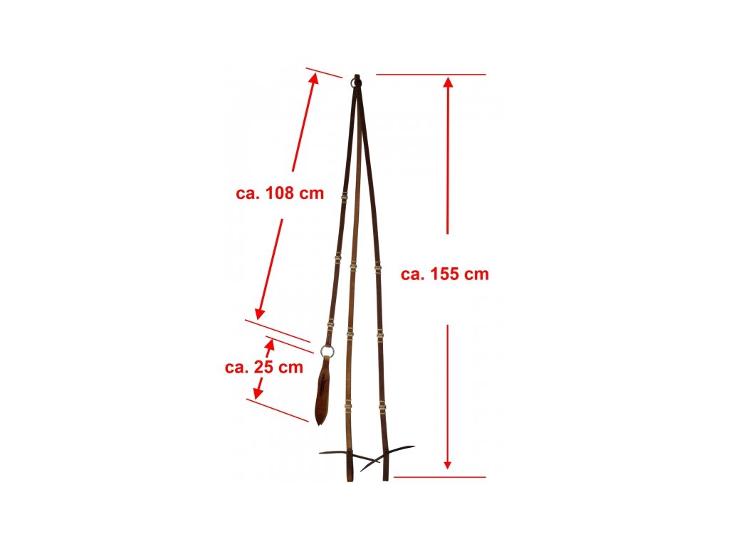 Romal Flat otěže ploché, zdobené rawhide opletem, hnědá. Celkové délka 295cm