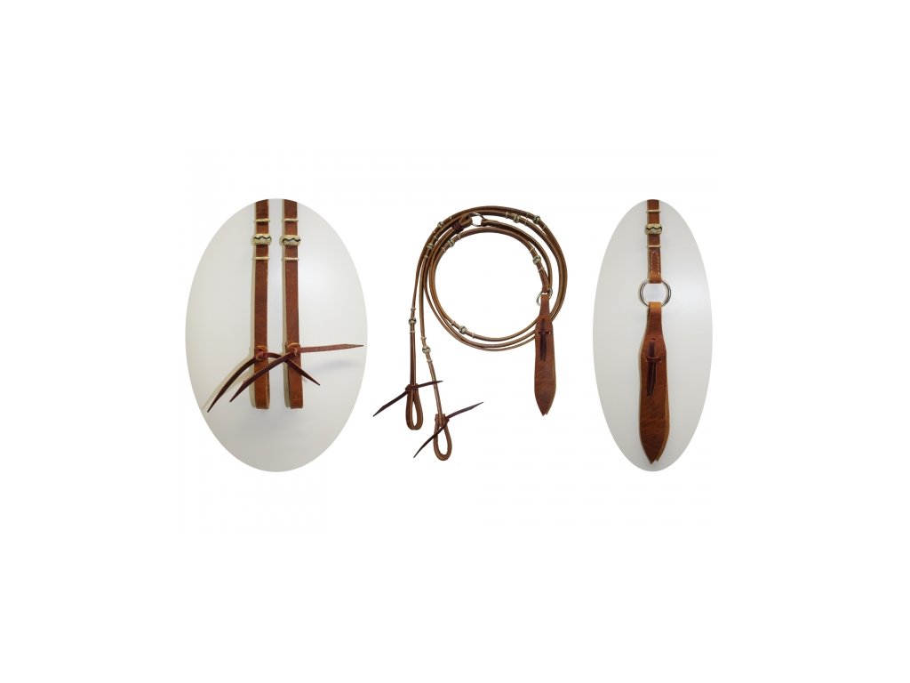 Romal Flat otěže ploché, zdobené rawhide opletem, hnědá