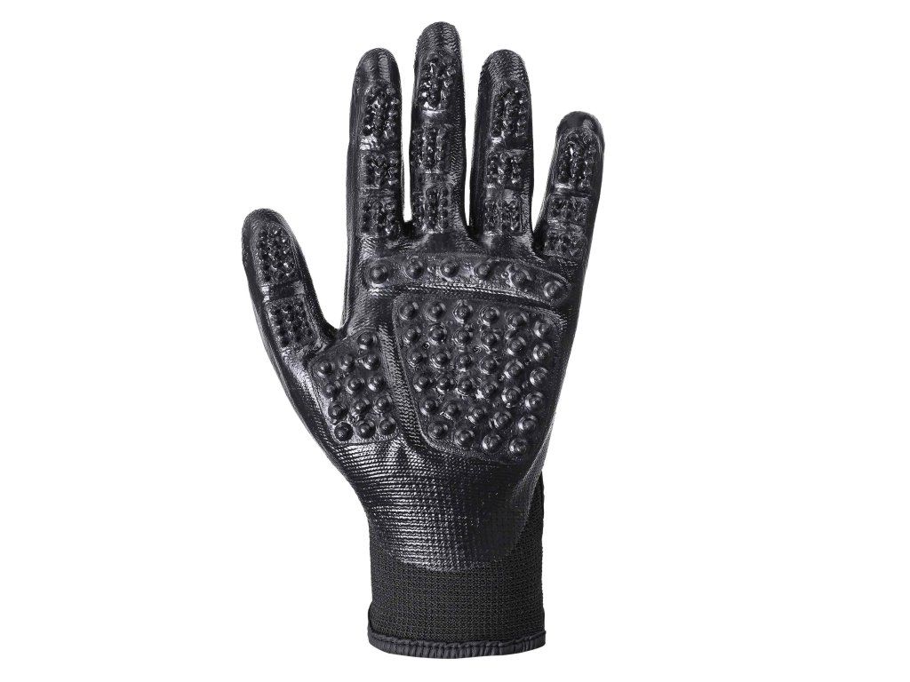 Praktická unisex rukavice vybavena masážními výstupky, které účinně odstraňují uvolněné chlupy, prach i nečistoty a zároveň příjemně masíruje pokožku. Ideální pro mytí koně i běžnou údržbu srsti.