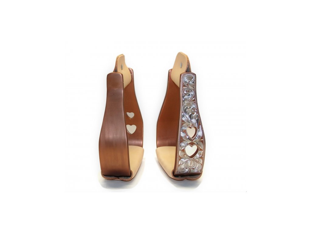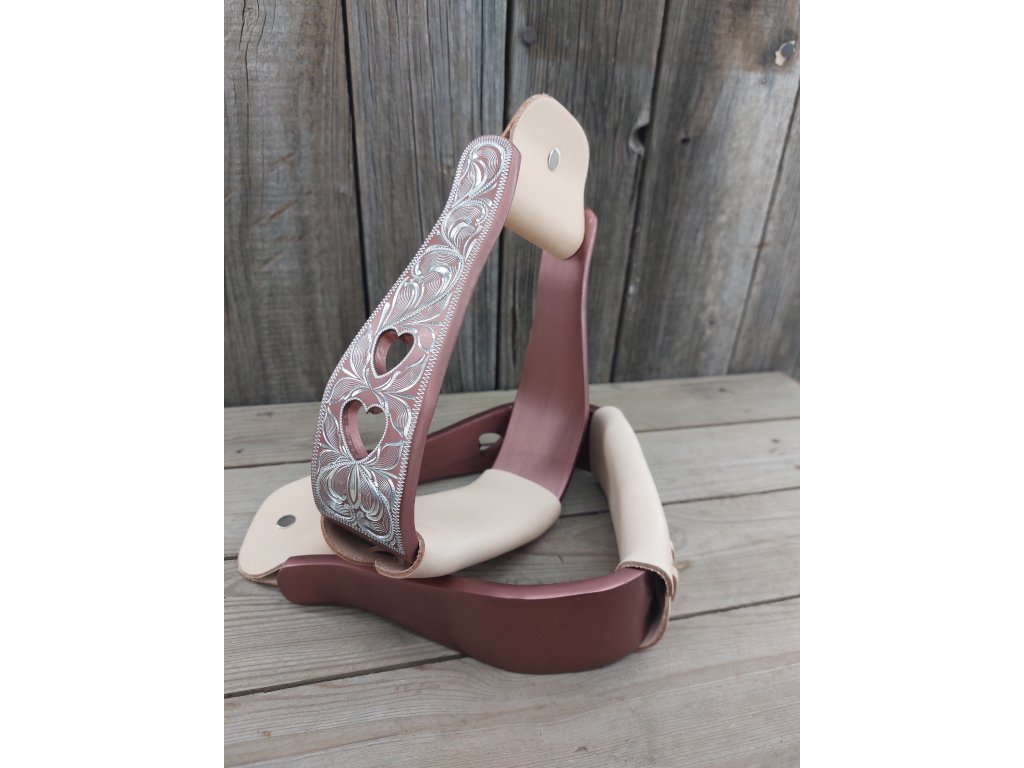 Krásné westernové třmeny, které se hodí na show, závody. Odlehčený hliník zdobený rytinou, kůží obalená nášlapná plocha.