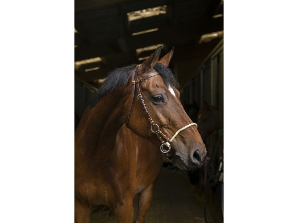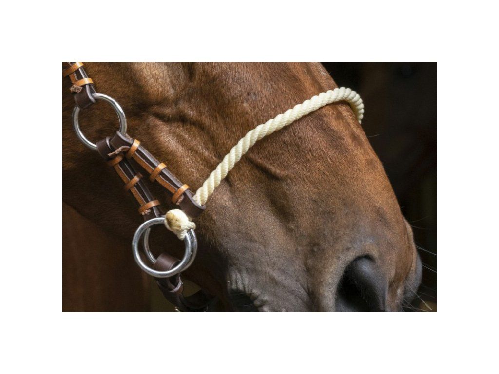 Bezudidlová kožená uzdečka. Nánosník vyroben z lana.