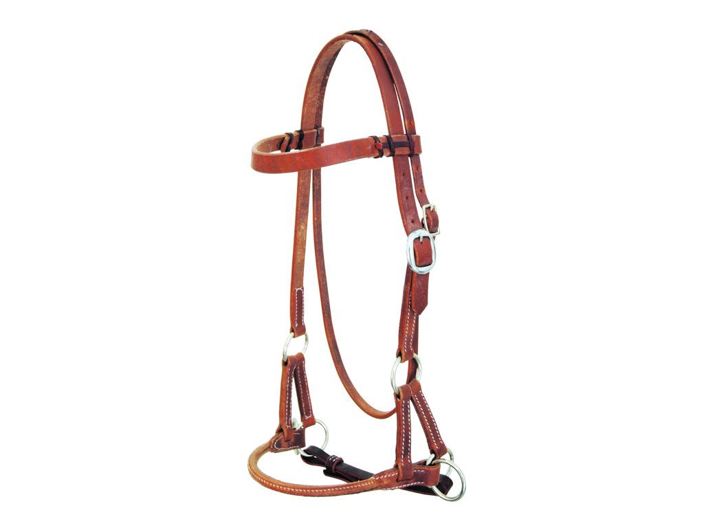 Kožený sidepull s kulatým nánosníkem Pool's, hnědá barva. Velikost QH (COB/FULL). Pozor, na fotografii je barva Natural Oiled.