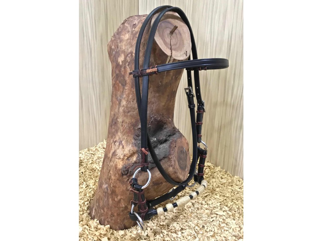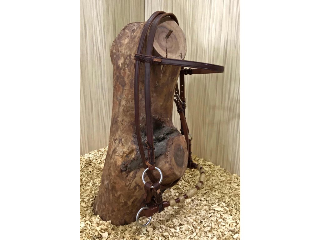 Kvalitní kožený sidepul s koženým kulatým nánosníkem a rawhide válečky. Nerezové kování. Velikost QH. Bez otěží.