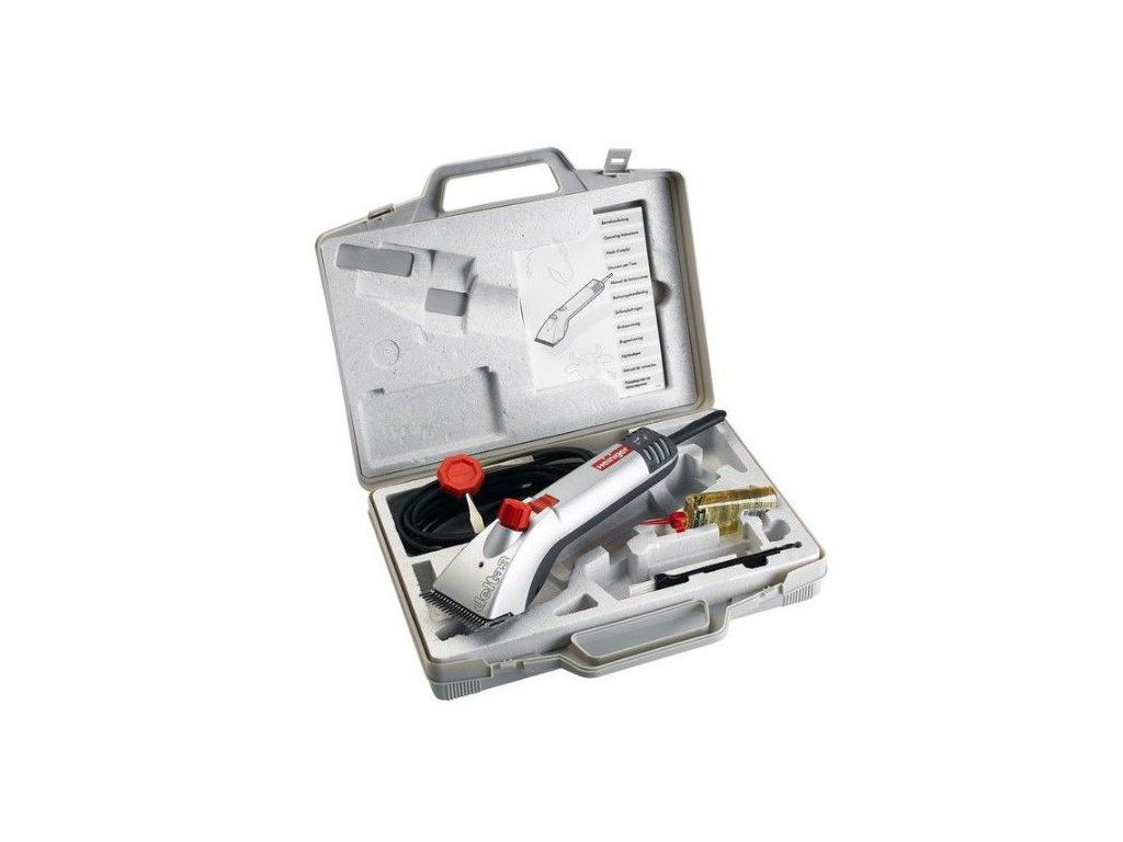 Dodáváno v plastovém kufříku, který obsahuje: strojek, kartáček na čištění, sadu náhradních nožů, olej a šroubovák.
