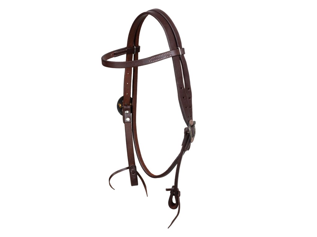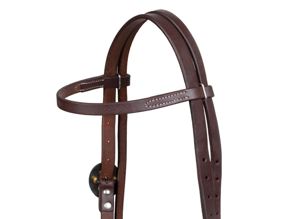 Westernová uzdečka v kvalitní kůži s jednoduchým jemným šitím a pozinkovanými přezkami.
