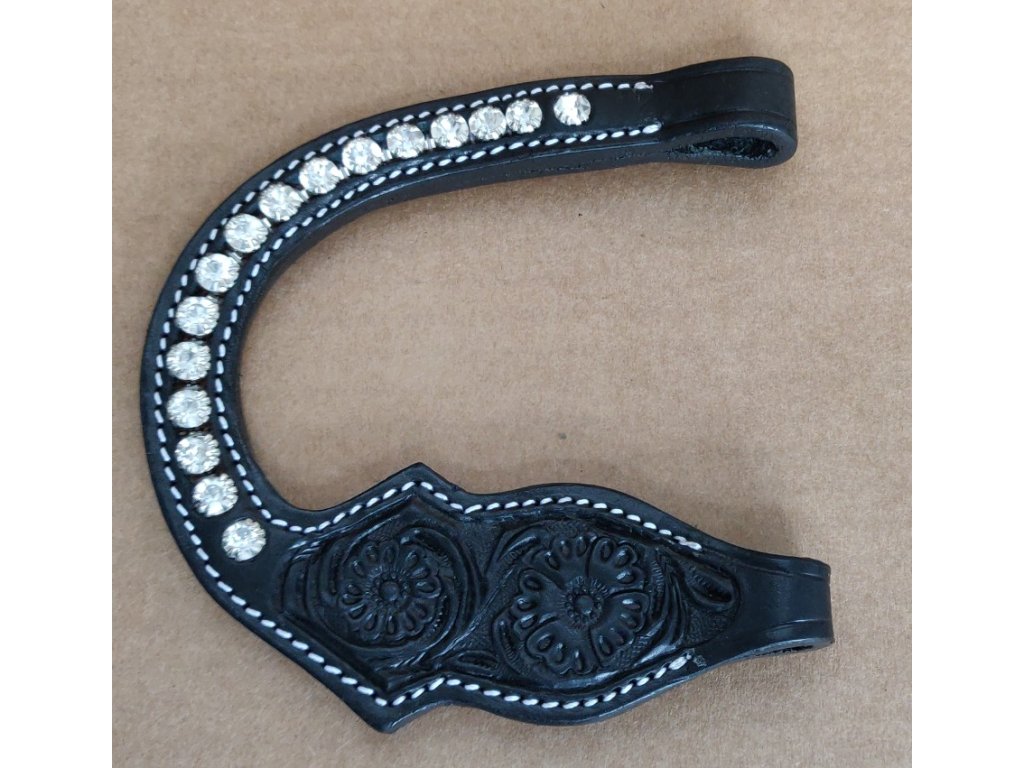 Náhradní dvououšková čelenka k westernové uzdečce z kvalitní kůže, zdobená ražbou a kamínky. Stylový a praktický doplněk pro snadnou výměnu.