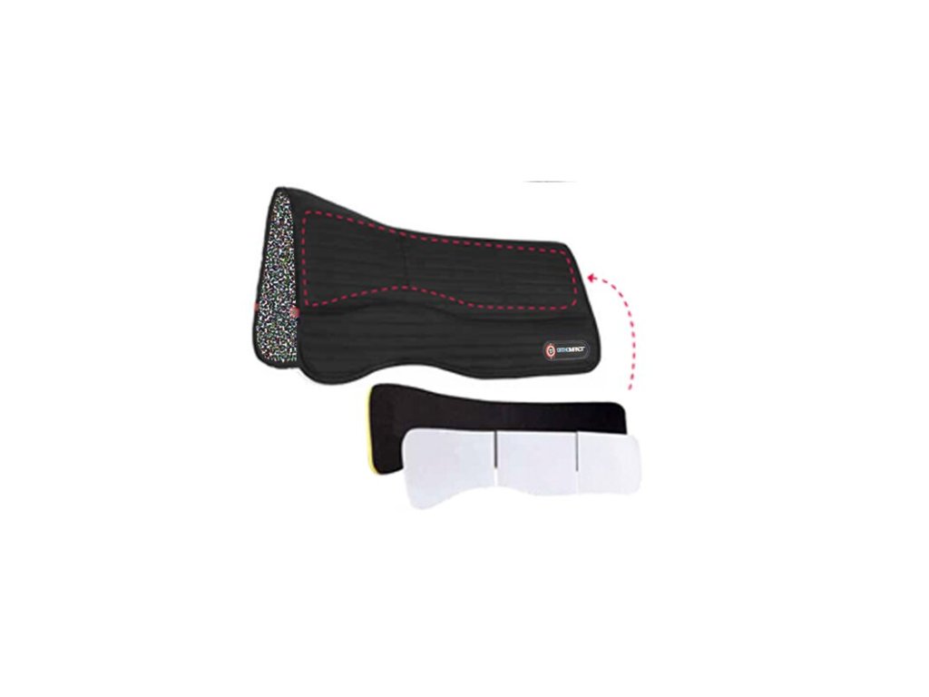 Pad obsahuje 6 vnitřních kapes, které jsou již předvyplněny 12 kusy ¼" fleece výplní (shimů). Ty lze individuálně upravovat – například při asymetrickém osvalení, budování svalů nebo pro kompenzaci nerovnoměrného zatížení. Deka tak umožňuje přesné doladění usazení sedla i při změnách v osvalení koně.