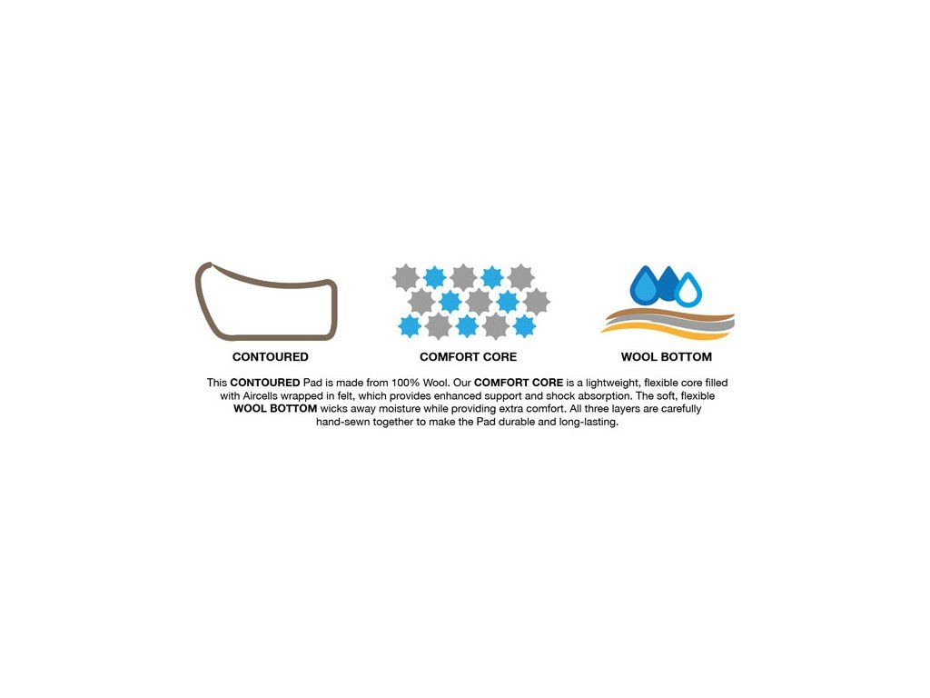 Tato anatomicky tvarovaná podsedlová dečka je vyrobena ze 100% vlny a je navržena tak, aby poskytovala maximální komfort a ochranu koňského hřbetu. Uvnitř dečky se nachází speciální ComfortCore – lehké a flexibilní jádro z pěny s uzavřenými vzduchovými buňkami, které je obalené plstí. Tento systém zajišťuje lepší oporu, optimální tlumení nárazů a pomáhá rovnoměrně rozložit tlak sedla.