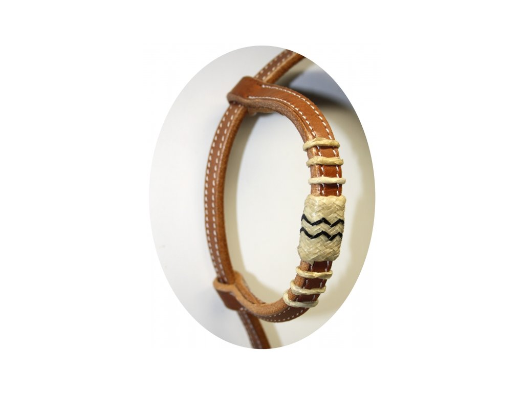 Krásná westernová jednouška zdobená rawhide je vyrobena z kvalitní kůže a je vhodná pro milovníky přirozené jednoduchosti. Uzdečka krásně ozdobí koně jakékoliv barvy.