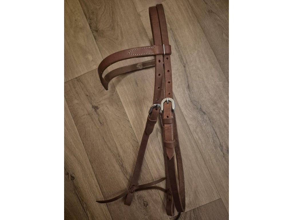 Robustní kožená uzdečka s atraktivně tvarovanou čelenkou do tvaru V. Kování je silné a odolné. Uzdečka je s podhrdelníkem, dodáváme bez otěží.
