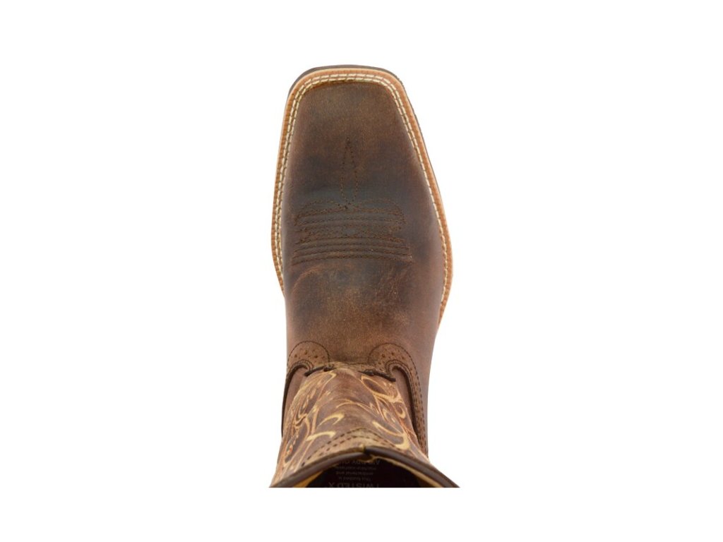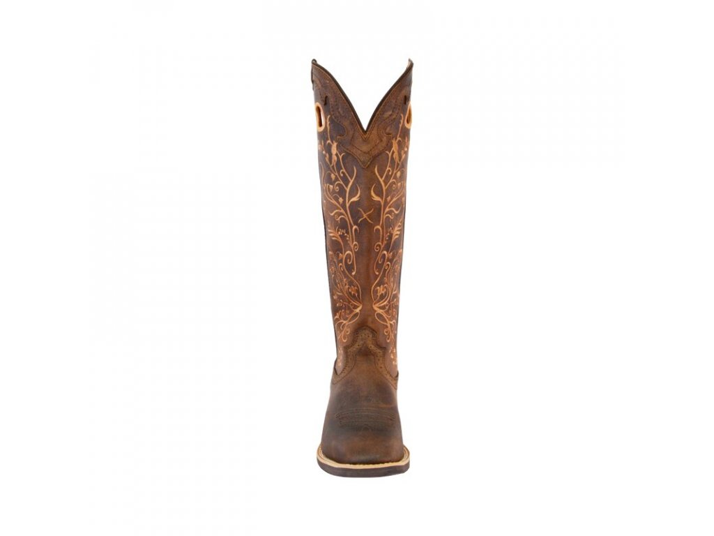 Elegantní hnědé dámské boty Twisted X Buckaroo jsou westernové boty v pískové barvě, s květinovým vzorem. Boty jsou vhodné pro celodenní nošení, a to díky vícevrstvé struktuře podrážky a vložené stabilizační stélce. Navíc mají patentovanou gelovou pěnovou vložku, která je anatomicky tvarovaná, antibakteriální a omyvatelná.