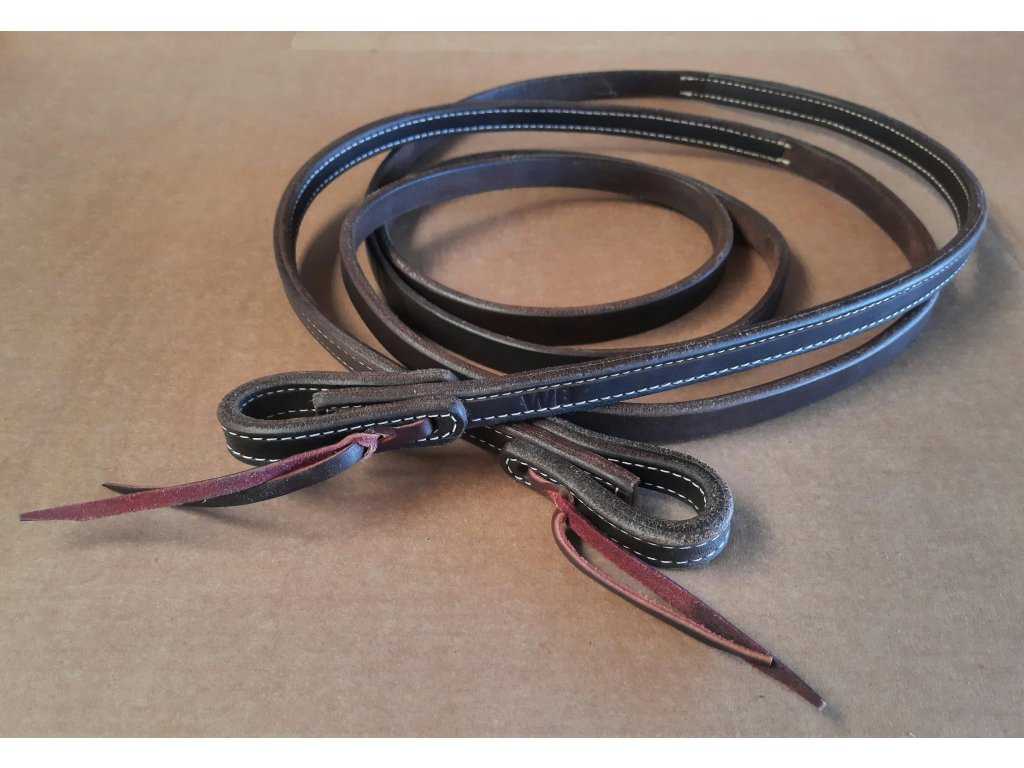 Westernové kožené otěže zesílené u udidla, což se využívá pro přesné vedení a citlivé pobídky, nedělené, hnědé. Síla 5/8" a celková délka je 10ft.
