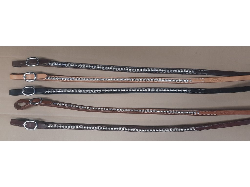 Westernové otěže se třpytivými kamínky, síla 5/8", různé barvy kůže